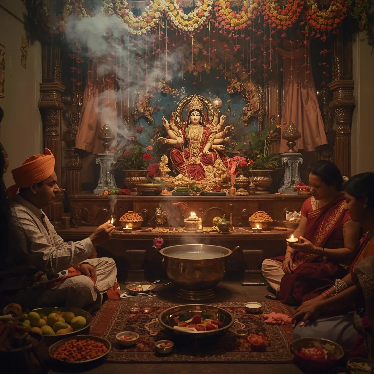 Navratri Puja & Kalash Sthapana is a sacred ritual performed during the nine days of Navratri to invoke the blessings of Goddess Durga. It brings prosperity, protection, and spiritual energy into the household while marking the beginning of the auspicious festival.